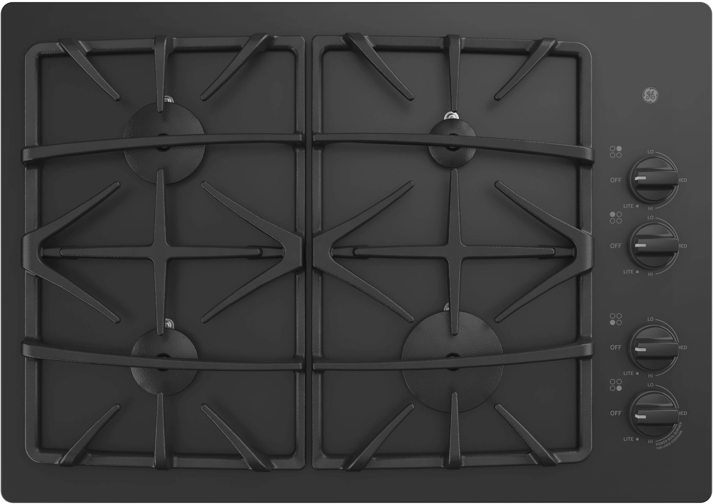 GE® 30" Built-In Gas Cooktop-Black with 4 burners, continuous grates and an electronic ignitionRead More